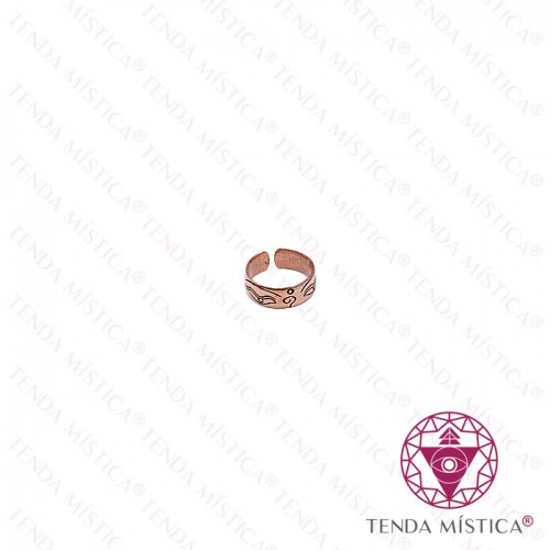 O anel de cobre é associada à proteção, equilíbrio energético e vitalidade. Ela é usada para afastar energias negativas e harmonizar o fluxo de energia do corpo. Muitas pessoas acreditam que auxilia na clareza mental, na intuição e no bem-estar emocional. Também é relacionada à estabilização emocional e ao fortalecimento espiritual, inspirada nas propriedades simbólicas do cobre. Embora seus efeitos sejam simbólicos, é valorizada como amuleto de proteção, equilíbrio e renovação de energia.