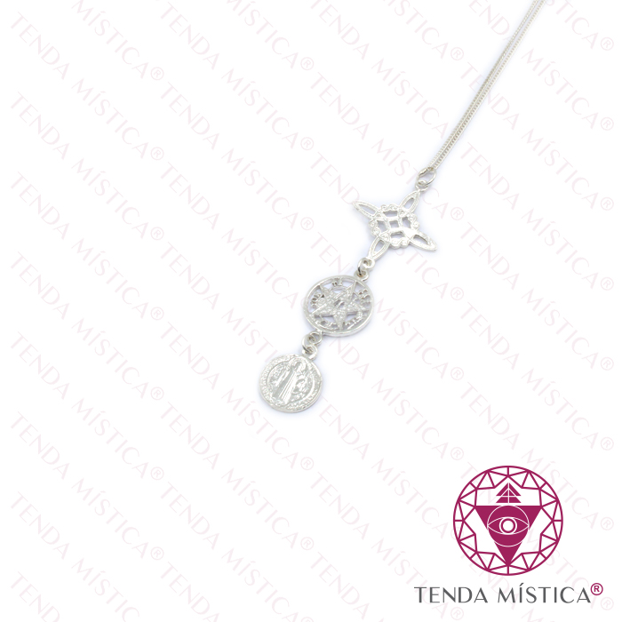Colar Prata Tripla Proteção Tetragrammaton e S.Bento 16mm
