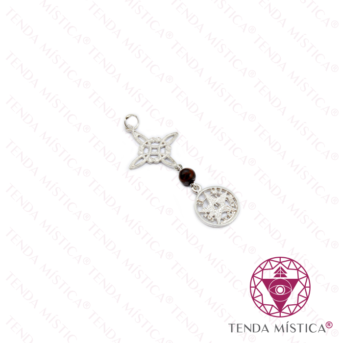 Pendente Prata Duas Proteções Bola Olho de Tigre