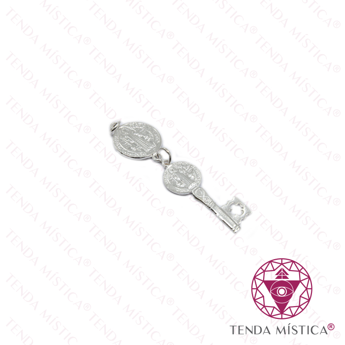 Pendente Prata Dupla Proteção Chave e Medalha S.Bento