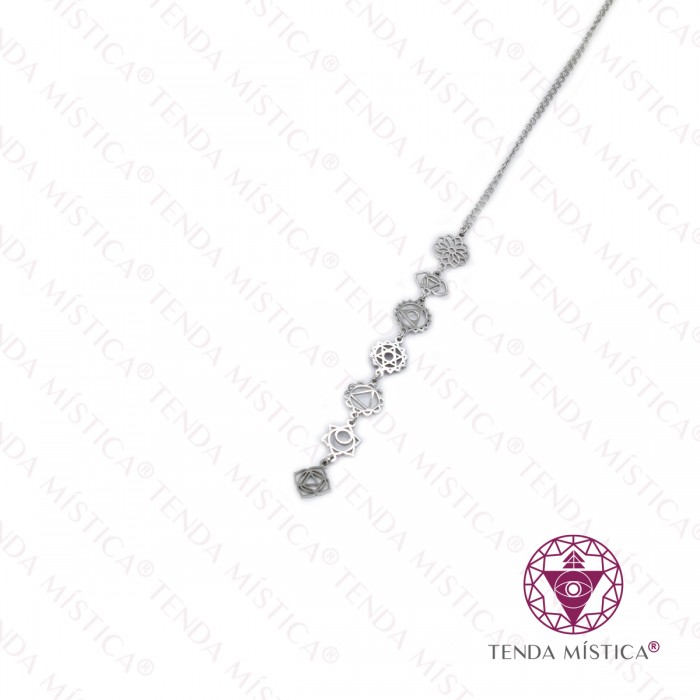 Colar Aço 7 Chakras Prateado